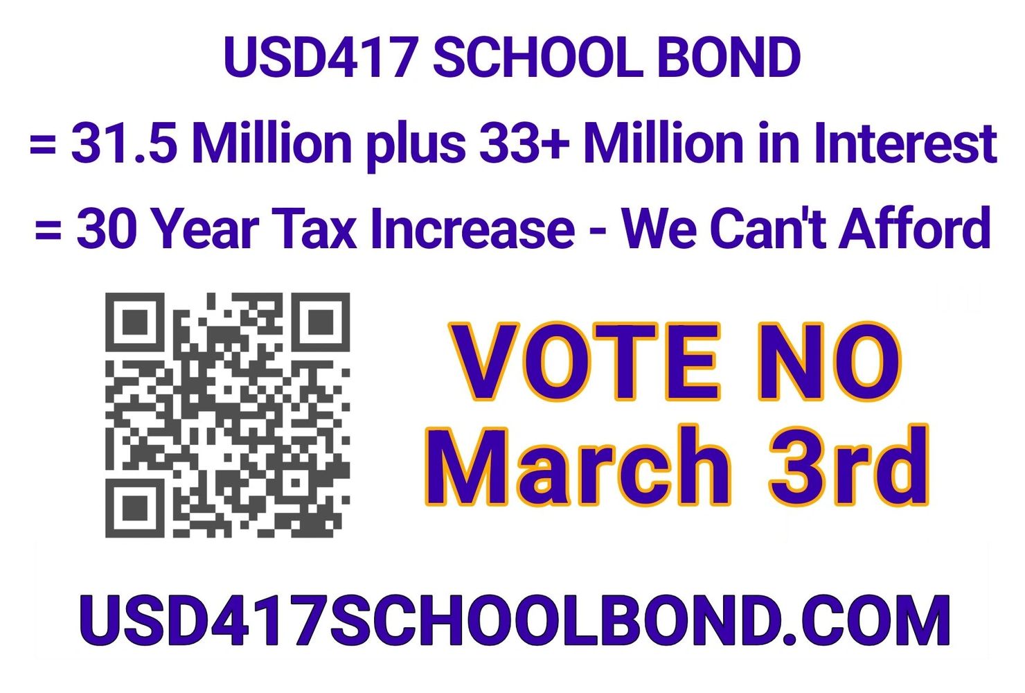 To inform the public of what this school bond is about. This is not the right plan for our tax dollars and too costly.
